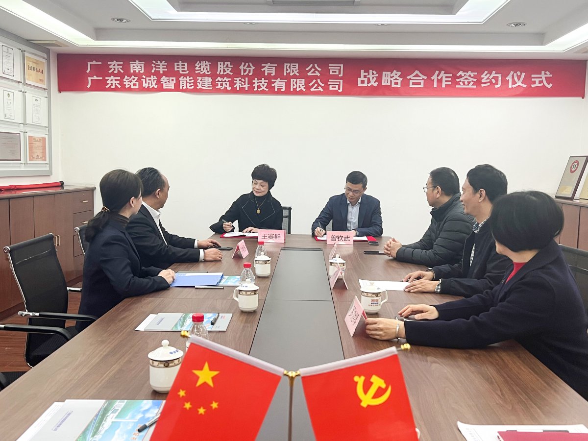 2022年1月19日上午,廣東南洋電纜股份有限公司與廣東銘誠智能建筑科技公司2022年度戰略合作協議簽約儀式在廣東南洋電纜三樓會議室順利舉行。雙方簽訂了戰略合作協議,成為戰略合作伙伴,互利共贏,開啟雙方友好合作的新征程。